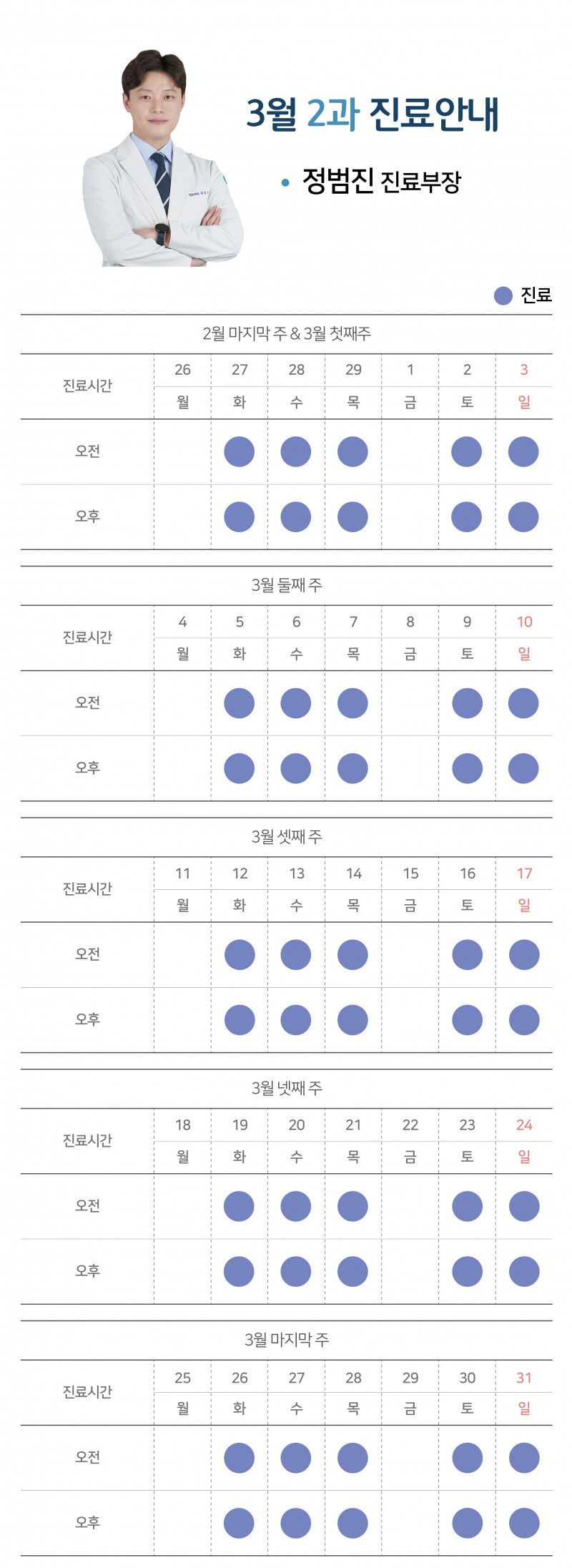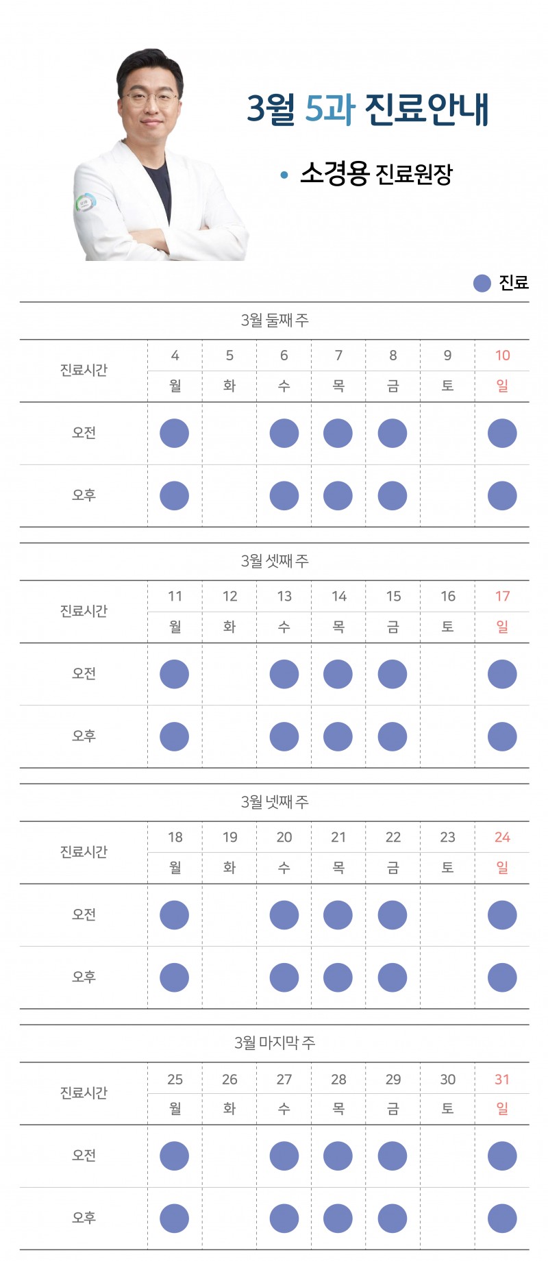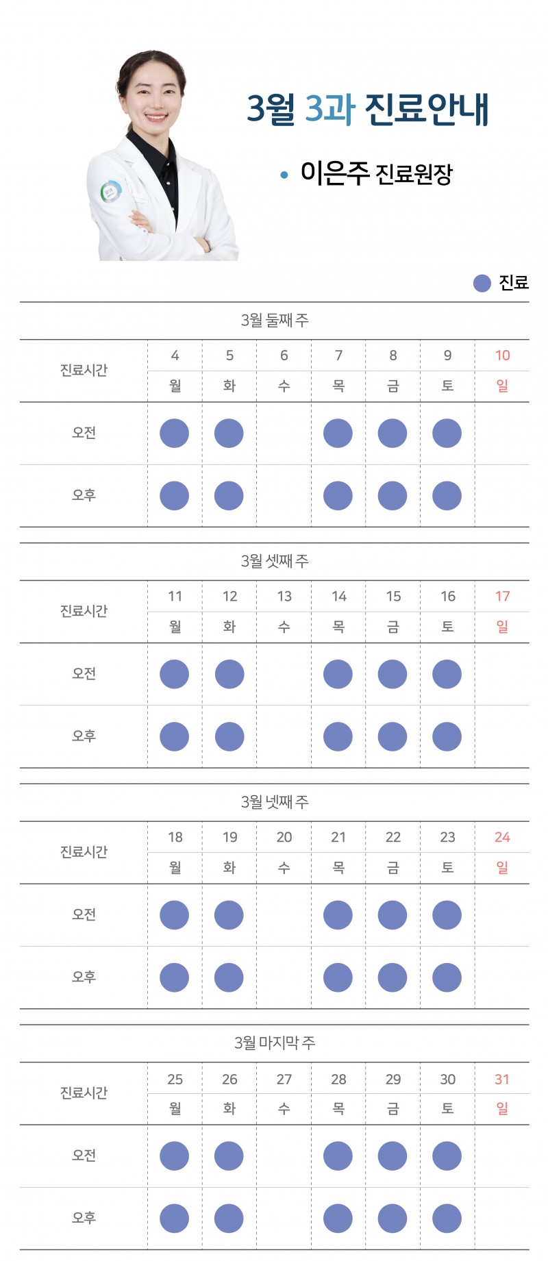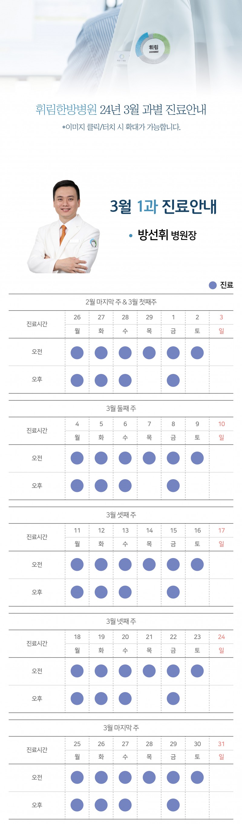 [공지사항] 24년 3월 과별 진료시간 안내