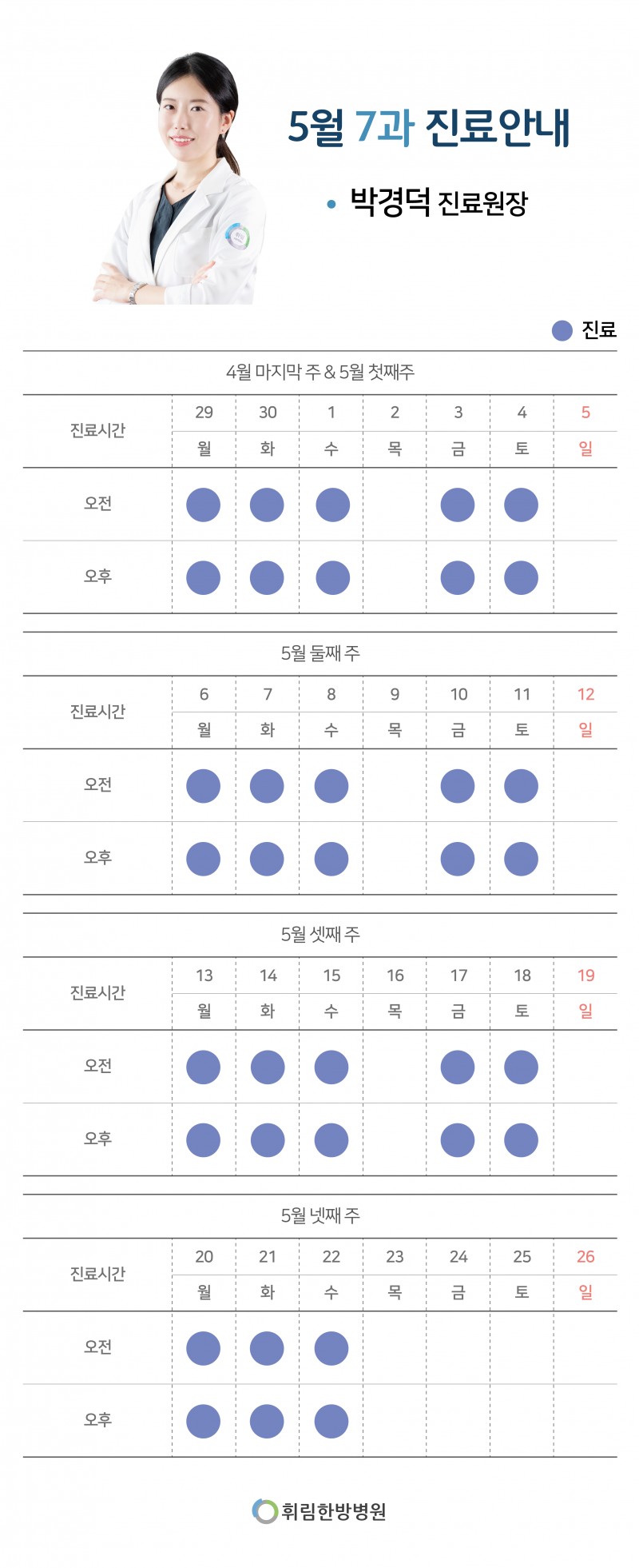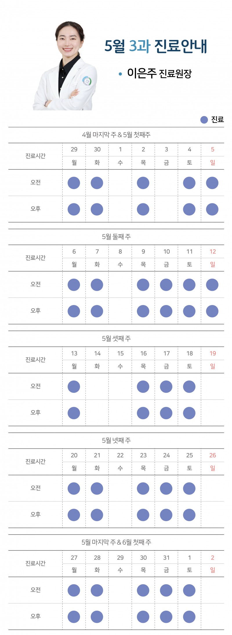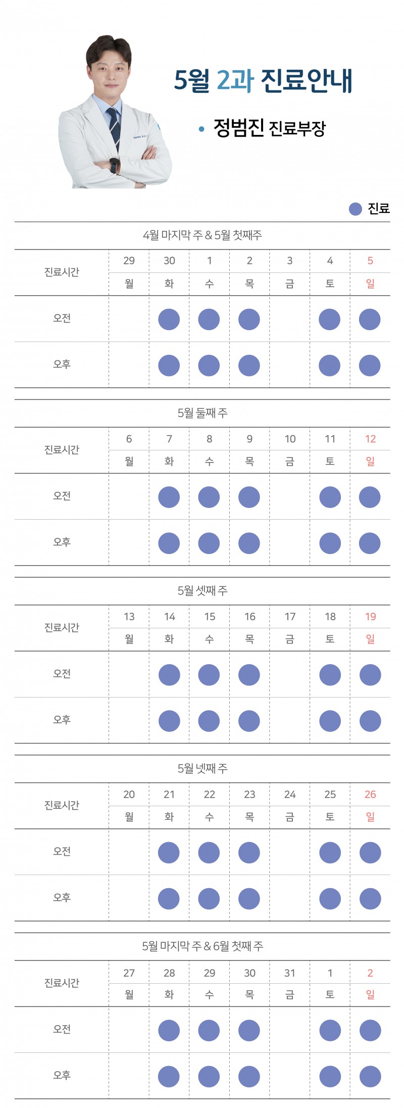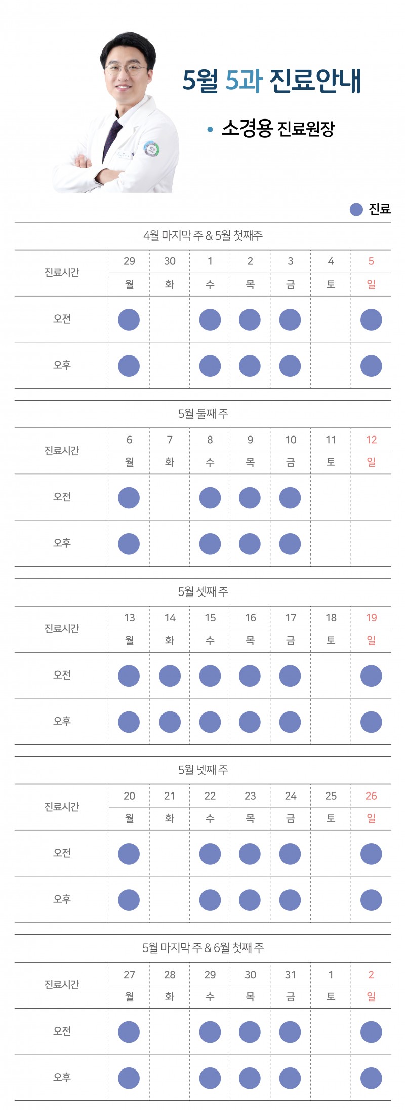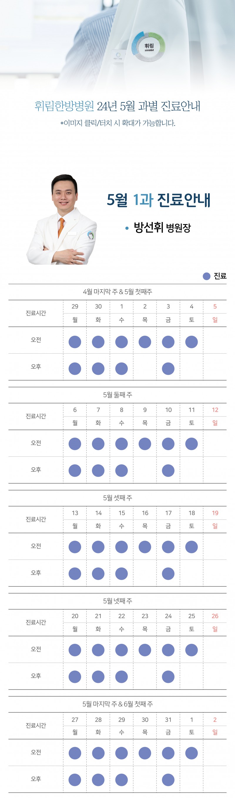 [공지사항] 24년 5월 과별 진료시간 안내