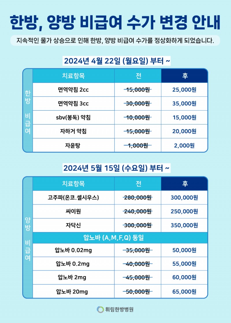 [공지사항] 한방, 양방 비급여 수가 변경 안내