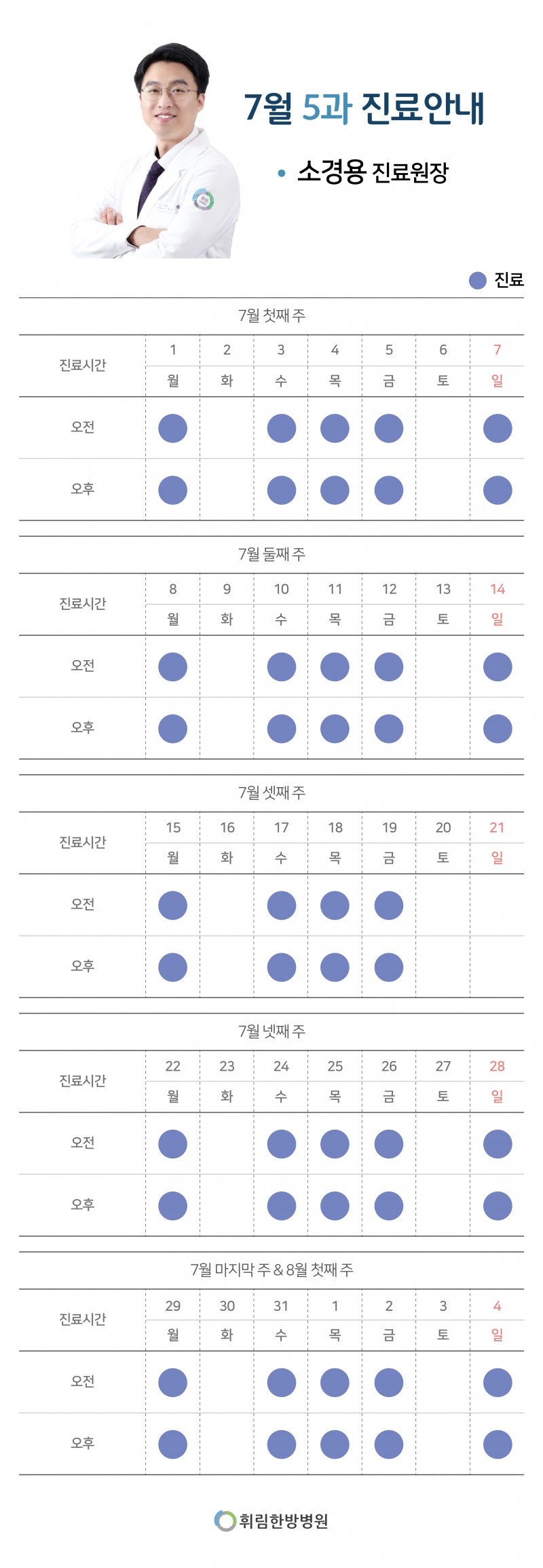 [공지사항] 24년 7월 과별 진료시간 안내